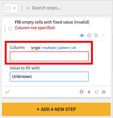 For example, you may want to fill empty cells of a column with a fixed value, such as Unknown. In the Fill empty cells with fixed value processor, there are a number of options for selecting columns.