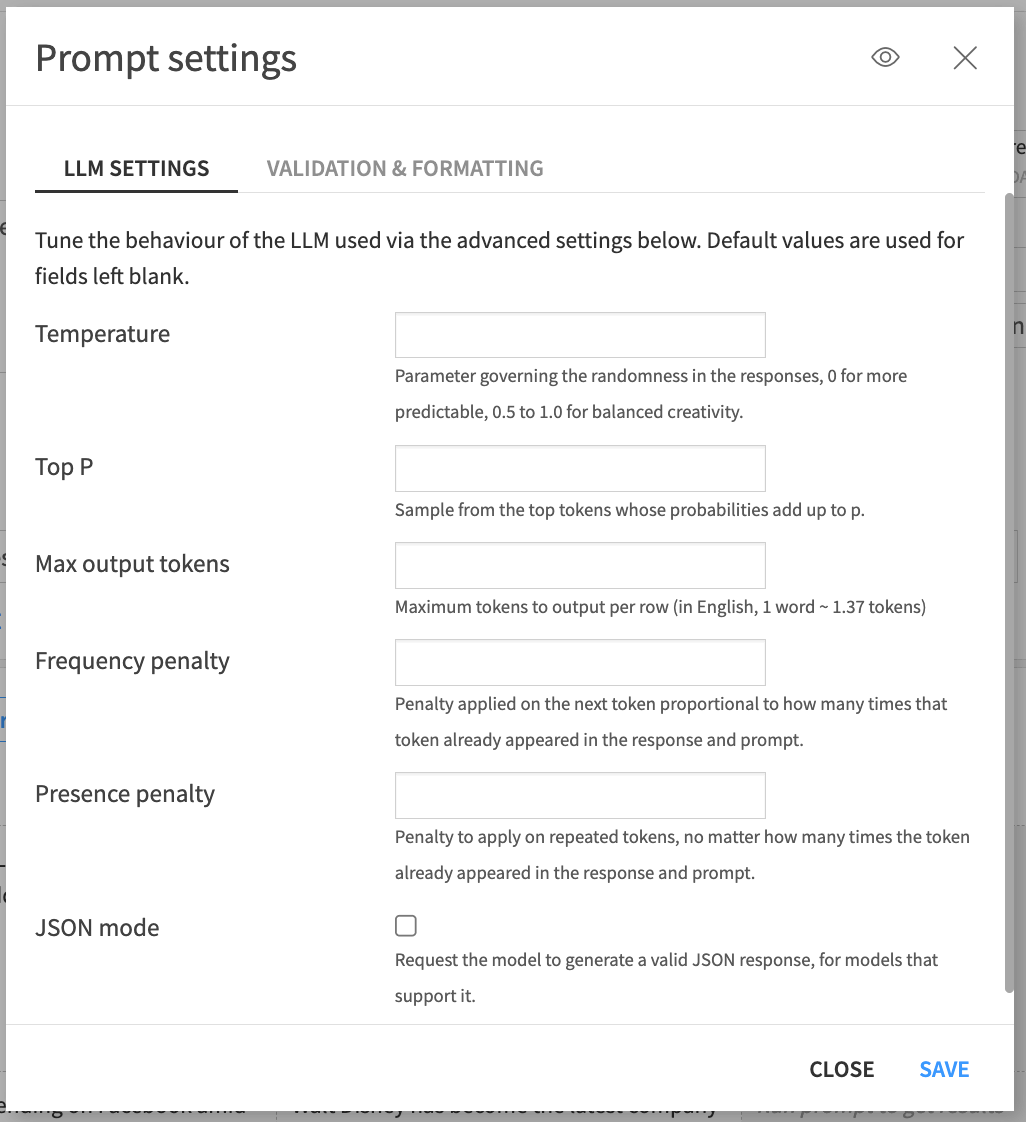 LLM settings |