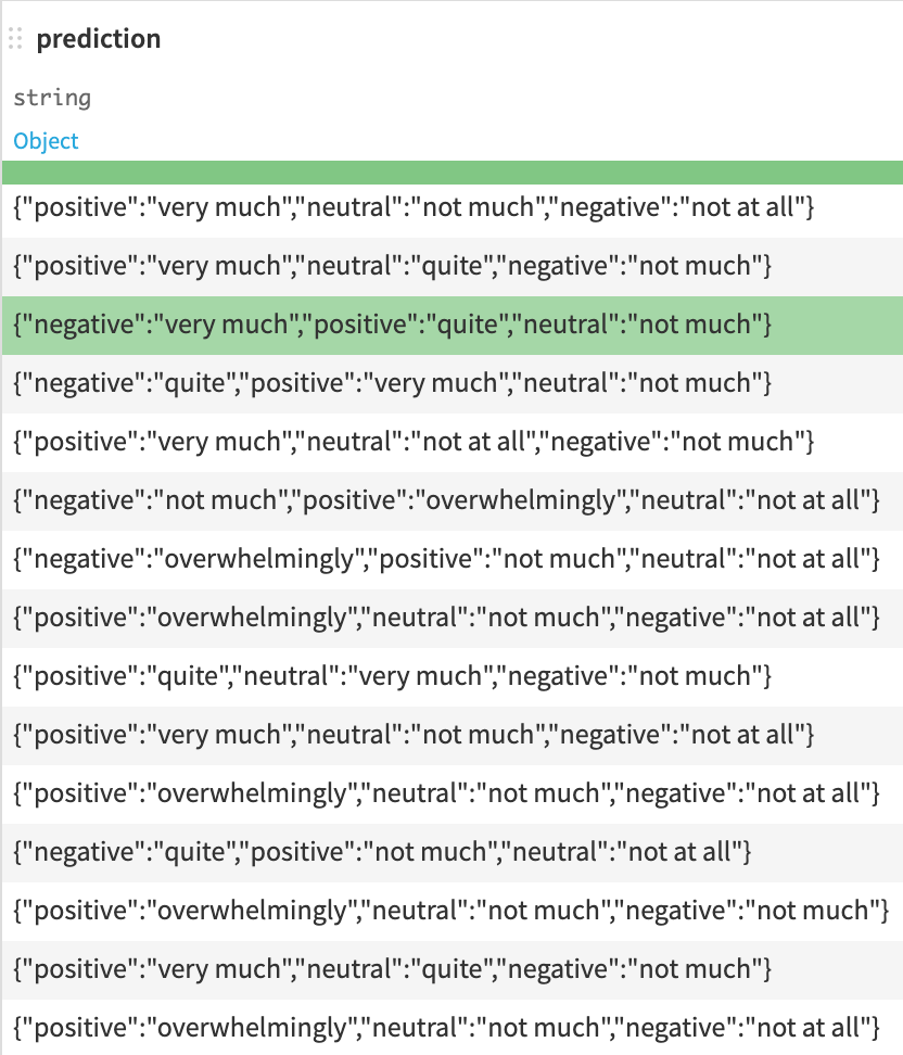 If you had set the output mode to Output all classes, the prediction column would include some JSON with the score for each class.