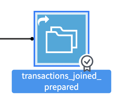 The dataset icon in the Flow now includes two new badges—an arrow and a checkmark ribbon, indicating that it’s both shared and has been promoted to Feature Group status.