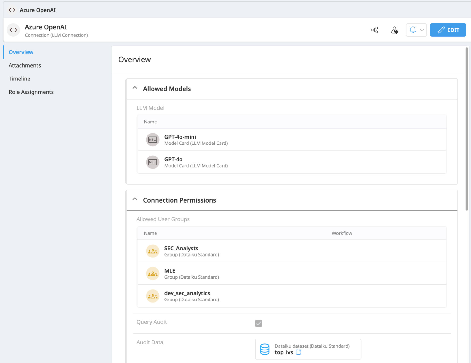 This Solution provides governance and procurement teams with a series of templates designed to manage the approval and usage of large language models (LLMs) across Dataiku.